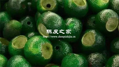 指的是果皮還沒有上色,還是青色的時(shí)候就采摘果子進(jìn)行加工,制作成的柑普茶顏色是靑褐色,有成千上萬微凹型的油室,看不出發(fā)皺。