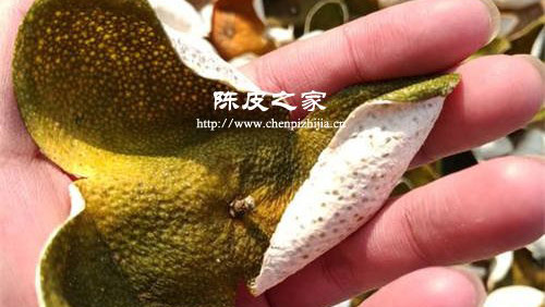 這個(gè)時(shí)候的果皮顏色是開始著色了,但是沒有完全著色,所以陳化好的陳皮就是褐黃色到棕黃色,有很多大并且凹陷進(jìn)去的油室,陳皮皺縮進(jìn)去的開始明顯,陳皮內(nèi)部很白,陳化好二紅皮是淡淡的黃色橘絡(luò)海綿不是太明顯,這個(gè)狀態(tài)下的陳皮摸起來質(zhì)地比較硬,皮還是比較厚的,味道微苦,稍微帶些甜味。