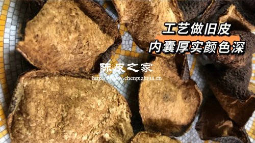 幾年的陳皮因為陳化的時間比較短,因此顏色變化比較小,會比十幾年的陳皮顏色要淺很多;而口感方面,幾年的陳皮往往會有比較明顯酸味和苦味,而十幾年的陳皮卻基本上品不出來了。