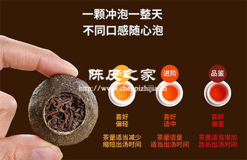 小青柑可以扭碎沖泡,也可以整顆沖泡,還可以在外皮上扎上小孔進行沖泡,不同的沖泡方法具有不同的口感,這也是小青柑受歡迎的原因之一。