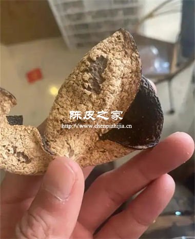 高年份陳皮因水分流失,質地輕盈,手感干爽,敲擊聲清脆。低年份或做舊品含水量高,手感沉重,敲擊聲沉悶。