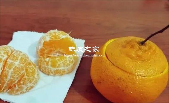 2.將丑橘割開,取出果肉,不要弄破皮,并在蓋子上開洞,以便散煙。