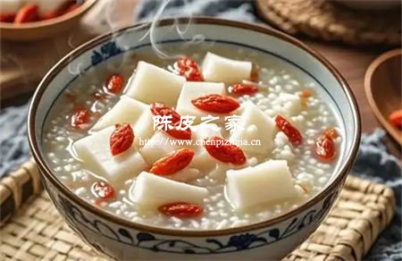 2.做法:將陳皮切絲和大米及去皮切成塊狀的山藥放入電飯煲,加水適量,按煮粥功能。煮好盛出,晾至溫熱時食用。