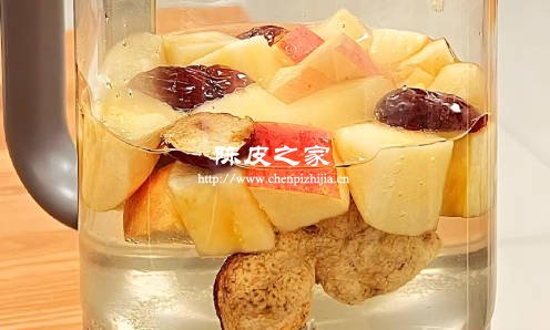 將蘋果切塊、紅棗去核,與陳皮一起放入鍋中煮 10 分鐘,最后加入枸杞再煮 5 分鐘,可根據個人口味加入冰糖調味。蘋果的果膠能促進腸道蠕動,紅棗可以補血,搭配陳皮順氣,三者煮在一起,味道甜美,適合消化不良、氣血不足的人群飲用。