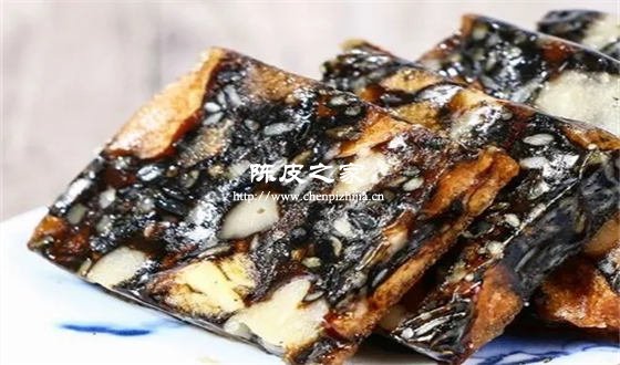 阿膠糕是指以阿膠(即驢皮)為主料,加入黑芝麻、枸杞、冰糖、黃酒、紅棗、桂圓、核桃仁等輔料熬制而成的膏狀、藥食兩用的食物。制作阿膠糕當然可以加陳皮了,不僅增加口感、調節氣味,還可以促進消化呢。